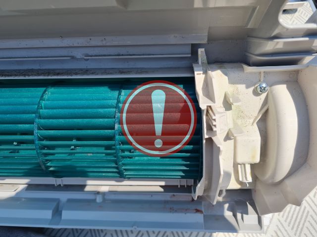 A ventillátor az ilyen jellegű mosás alatt a ventillátorról feloldott szennyeződést elszórja a berendezésen belül de ez talán a kisebbik baj. A nagyobbik baj, hogy ezzel a módszerrel nem lehet teljesen kitisztítani a szennyeződéseket az eldugott helyekről, csak a ventillátoron letelepedett port és a hőcserélőt lehet lemosni. A cseppvíz tálcában és nehezen hozzáférhető helyeken a lerakódott szennyeződés, penész ugyan úgy ott marad, attól függően, hogy a felvitt vegyszer mennyire tud a megfelelő helyekre eljutni és hatékonyan kifejteni a hatását.