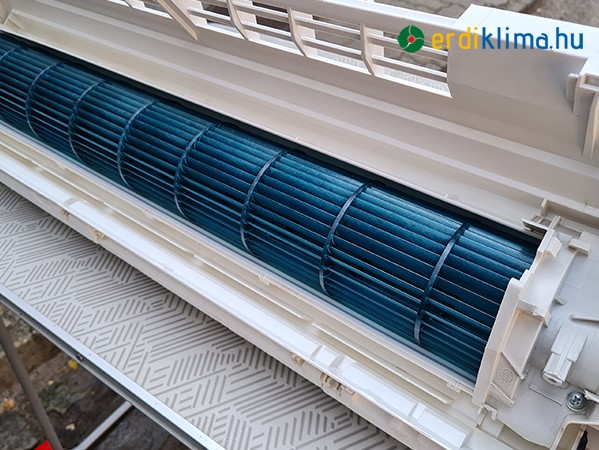 Teljeskörű karbantartásnál leszereljük a burkolatot, kiszereljük a ventillátort, cseppvíz tálcát és alaposan kitakartjuk, fertőtlenítjük a legeldugottabb részeken is. A kültéri egységet is teljesen kitakarítjuk.