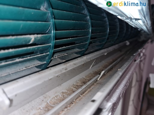 Alap takarítás esetén leszereljük a burkolatot, kiszereljük a ventillátort és alaposan letakarítjuk a lerakódott szennyeződéseket a csepvíz tálcából. Tisztítjuk a kültéri egység hőcserélőjét is.